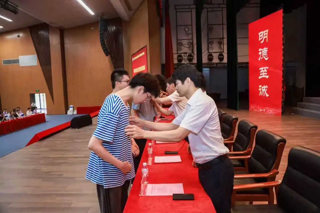 学院领导为新生代表佩戴校徽