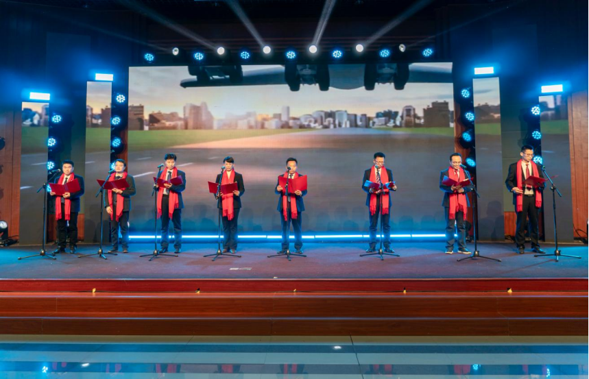 联欢会在全体人员齐声合唱《相亲相爱一家人》的温暖歌声中圆满落下帷幕,并于现场进行了全场合影。整场活动不仅展现了动漫屋