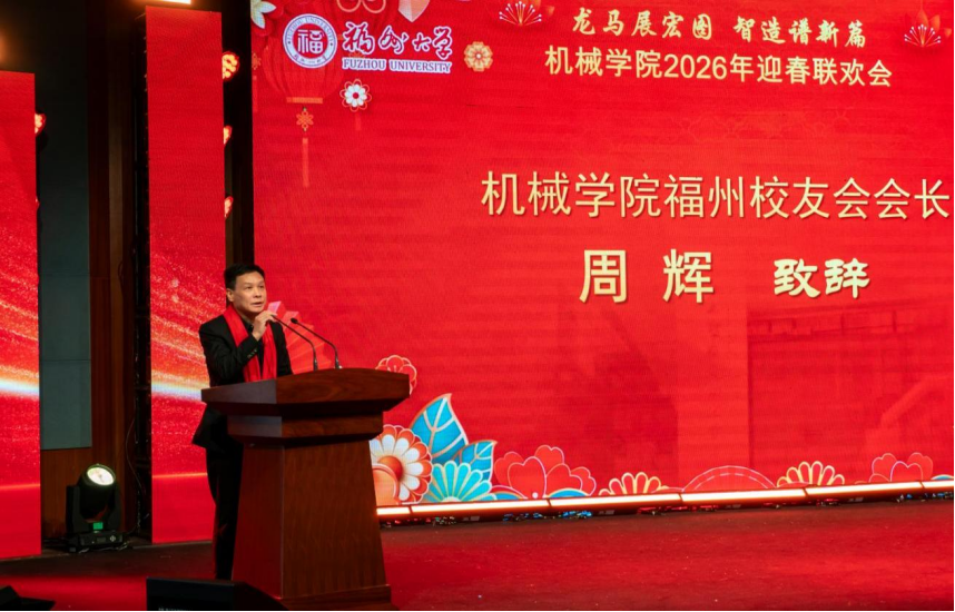 2025年在学科建设、科研创新和人才培养等方面取得的显著成绩,并代表学校向辛勤耕耘在教学、科研、管理一线的全体教职工,以及心系母校、长期支持学院发展的广大校友,致以诚挚的新春祝福。他勉励全院师生把握马年奋发向上之势,再接再厉,力争在国家重大重点项目、国家级科研平台建设及国家科技三大奖等领域实现新突破,为学校“双一流”建设贡献更多机械力量,为福建高质量发展提供福大机械方案。