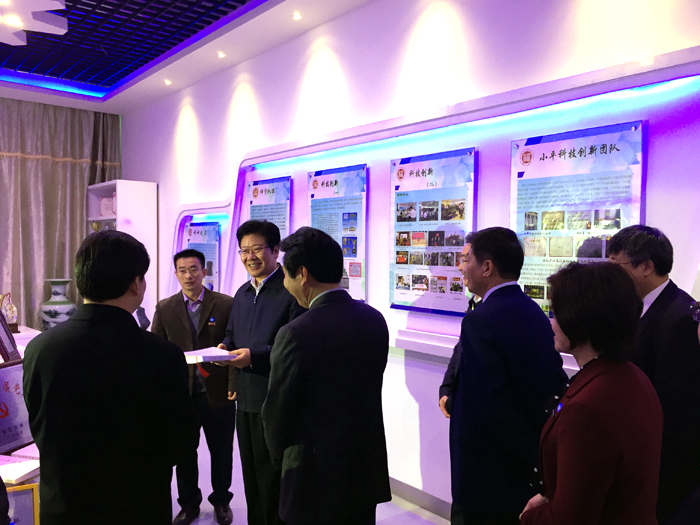 创新文化馆,参观了小平科技创新团队党支部科技创新成果展。智能机器人、无人机、K-night赛车、3D打印机……张春贤兴致勃勃地观看了小平科技创新团队党支部建设成果和支部成员创新成果汇报。他一边参观,一边与小平科技创新团队党支部负责人亲切交谈,详细了解小平科技创新团队党支部如何发挥支部主体作用,勇当创新创业教育的领头羊。在听完小平科技创新团队党支部介绍后,张春贤指出:“小平科技创新团队党支部是有战斗力的!”