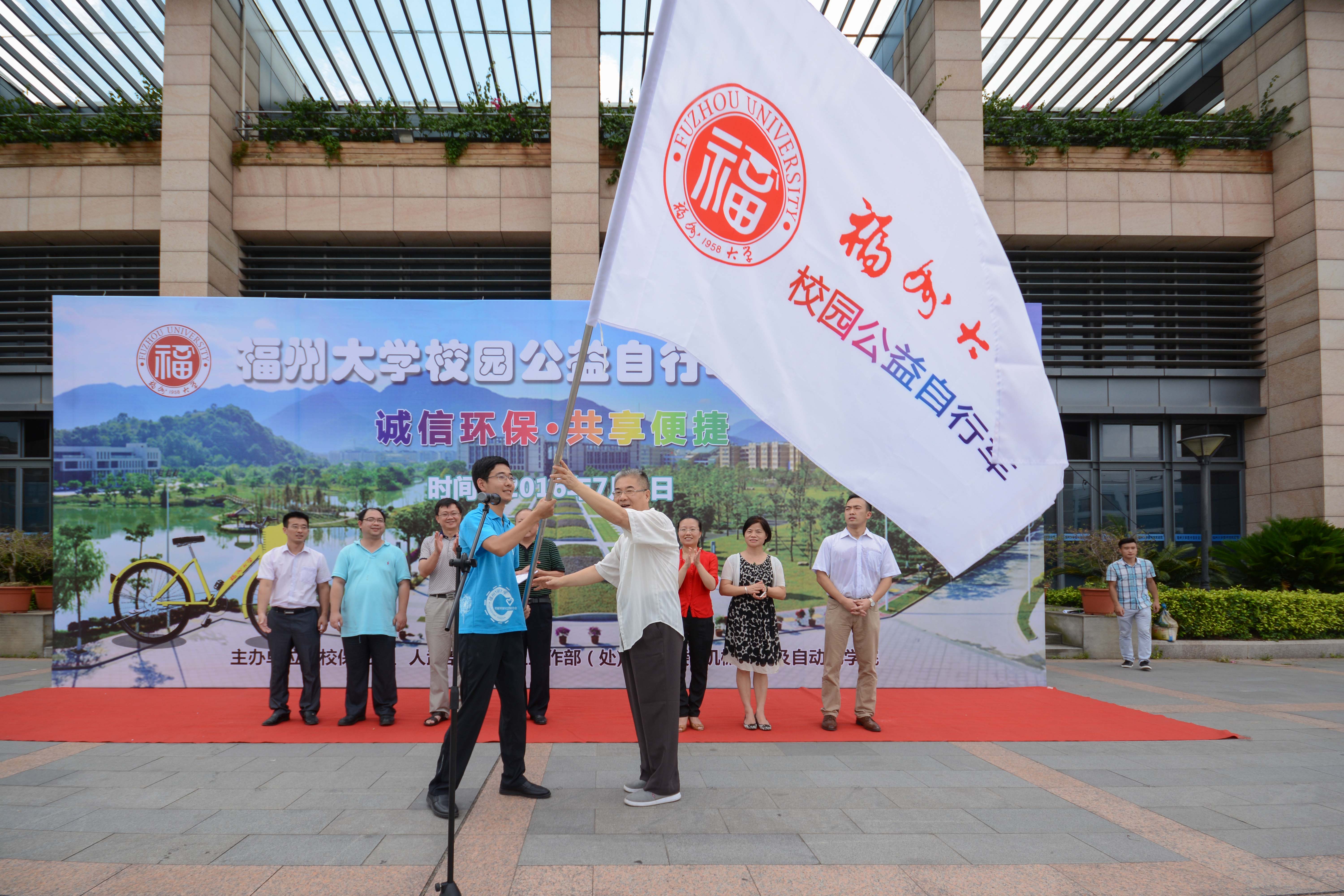 校党委副书记陈少平研究员在致辞中对该活动做了充分肯定,并希望公益自行车项目在方便师生的同时,能够有效提高我校师生的公益理念。随后,陈少平副书记向校园公益自行车服务队志愿者代表授旗。