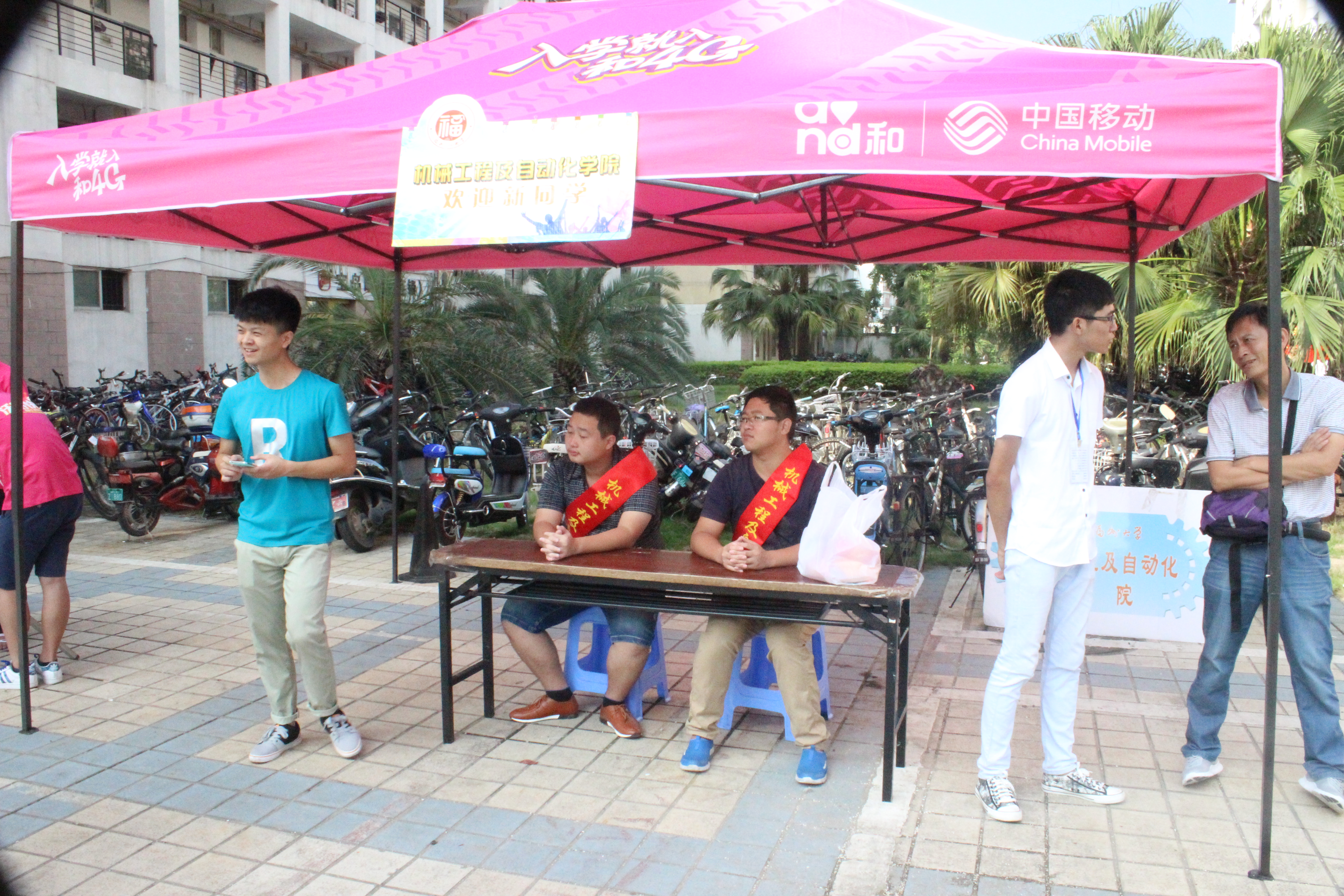 学生会各部门及各班早早地将八号楼下新生报到咨询处以及六号楼架空层新生报到处布置完毕。报到处分班级分板块,使报到工作有序地进行。大家都以饱满的热情迎接新生,耐心地与学生和家长沟通,指导他们完成注册,并赠予“新生大礼包”一份。