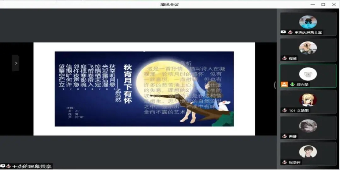 分享会的第二个部分就是诗词分享了,从古至今,文人骚客以中秋为题,留下了众多精彩的诗句名言。
