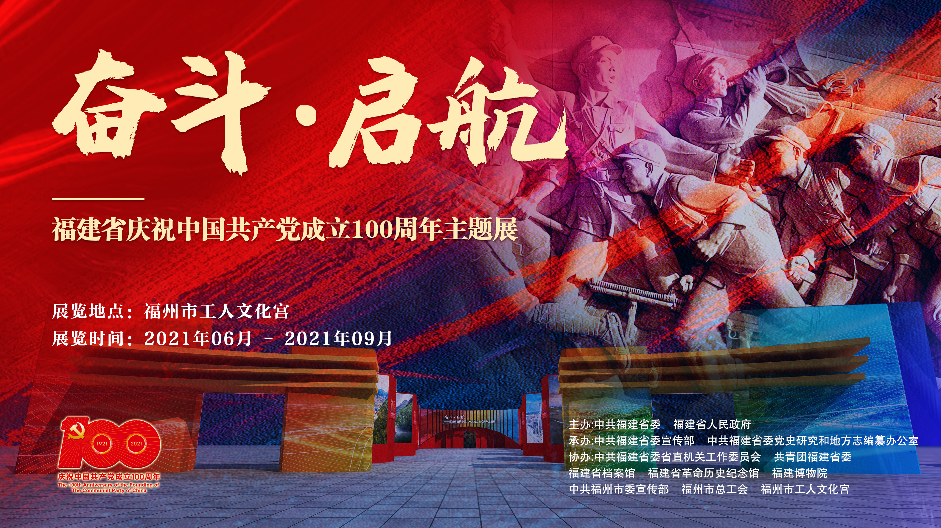 奋斗·启航”——福建省庆祝中国共产党成立100周年主题展海报