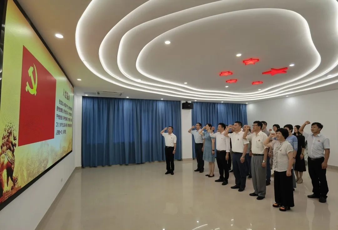 党课结束后,林键副校长带领全体与会党员参观了动漫屋 党史教育馆,回顾了党百年奋斗的光辉历程,也进一步了解福建省和学校的有关党史。活动最后,全体党员在林键副校长的领誓下,面向党旗,重温入党誓词。