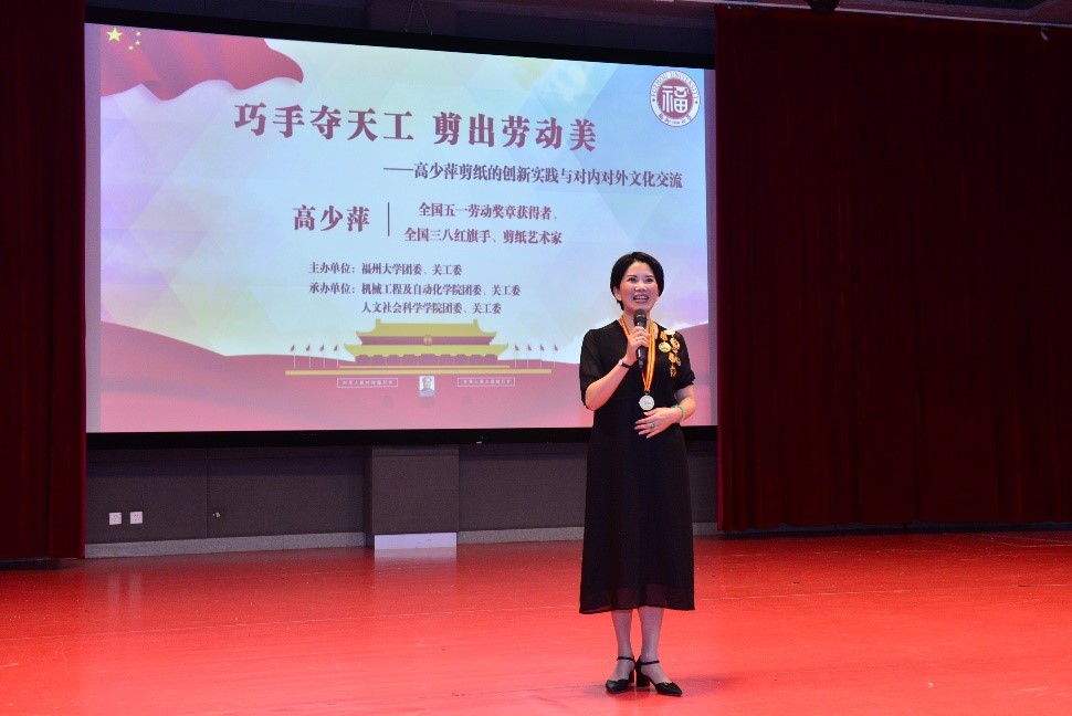 5月29日上午,动漫屋 “纪念建党百年,宏扬工匠精工精神——全国劳动模范进校园系列活动”首场活动在动漫屋 图书馆博学厅隆重举行。全国五一劳动奖章获得者、全国三八红旗手、当代剪纸艺术家高少萍老师担任主讲嘉宾,作题为《巧手夺天工,剪出劳动美——高少萍剪纸的创新实践与对内对外文化交流》的专题思政课。本次活动由动漫屋 团委、关工委、福建省品牌文化发展研究会主办,动漫屋 、人文学院团委、关工委承办。校党委副书记林生、校关工委常务副主任陈少平等领导出席本次活动。专题思政课由校团委书记吴雪主持。