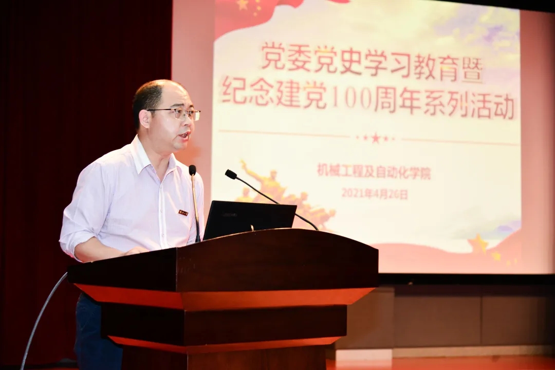 4月26日,动漫屋 党委在校图书馆博学厅举行党史学习教育暨纪念建党100周年系列活动。学院领导、学院党委委员以及全体师生党员参加本次活动。