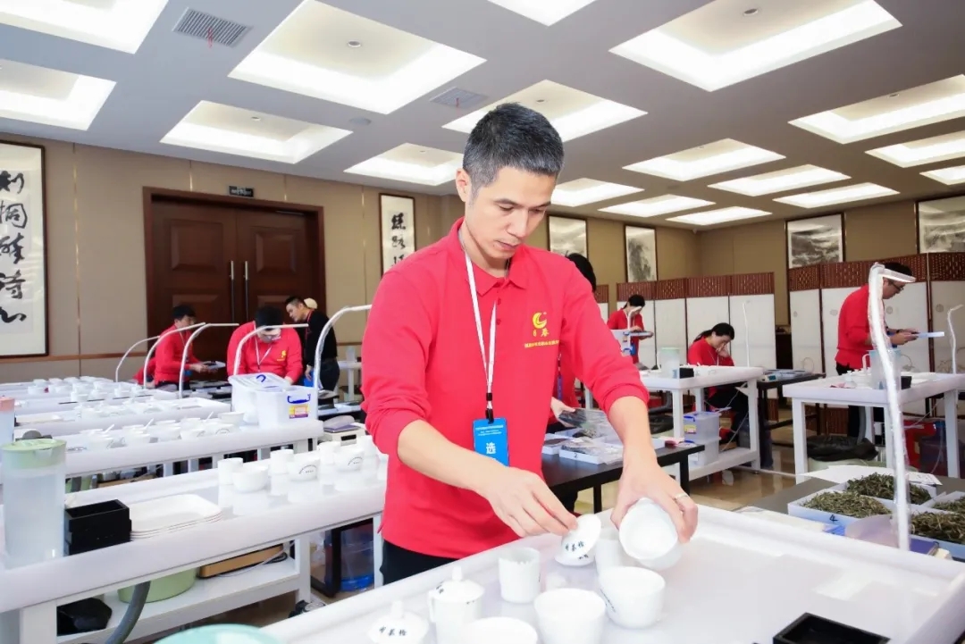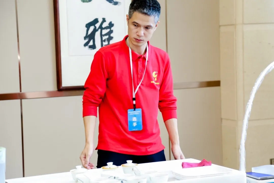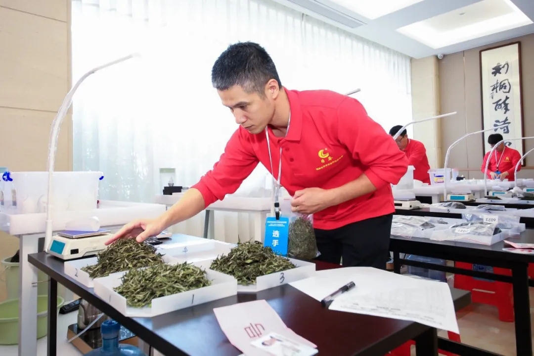 竞赛分为理论与实操两部分,其中理论考试占20%,技能操作占80%。理论知识采用笔试办法,从职业技能鉴定国家题库中抽取试题;技能操作采取现场操作的办法,选手需进行茶形辨认、香味排列、品质审定、对样品茶、茶品设计五个板块,6个环节的考试时间一共是335分钟,要5个多小时的考试时间,挑战难度很大。