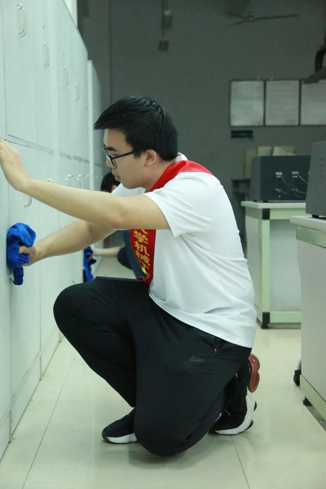 在学院楼,在校老师带头,共计200多名师生参与到学院公共区域卫生大扫除。学生们佩戴志愿者绶带,重点打扫学院实验室、机械创新文化馆、同观国学中心、学院会议室、露天天台、楼梯等学院公共区域卫生。同学们积极行动起来,认真清扫,做到不留死角、不漏一处。在生活区,全体学生宿舍安排卫生大扫除,推进校文明宿舍创建活动,营造文明、舒适、安全、整洁的学习生活环境。