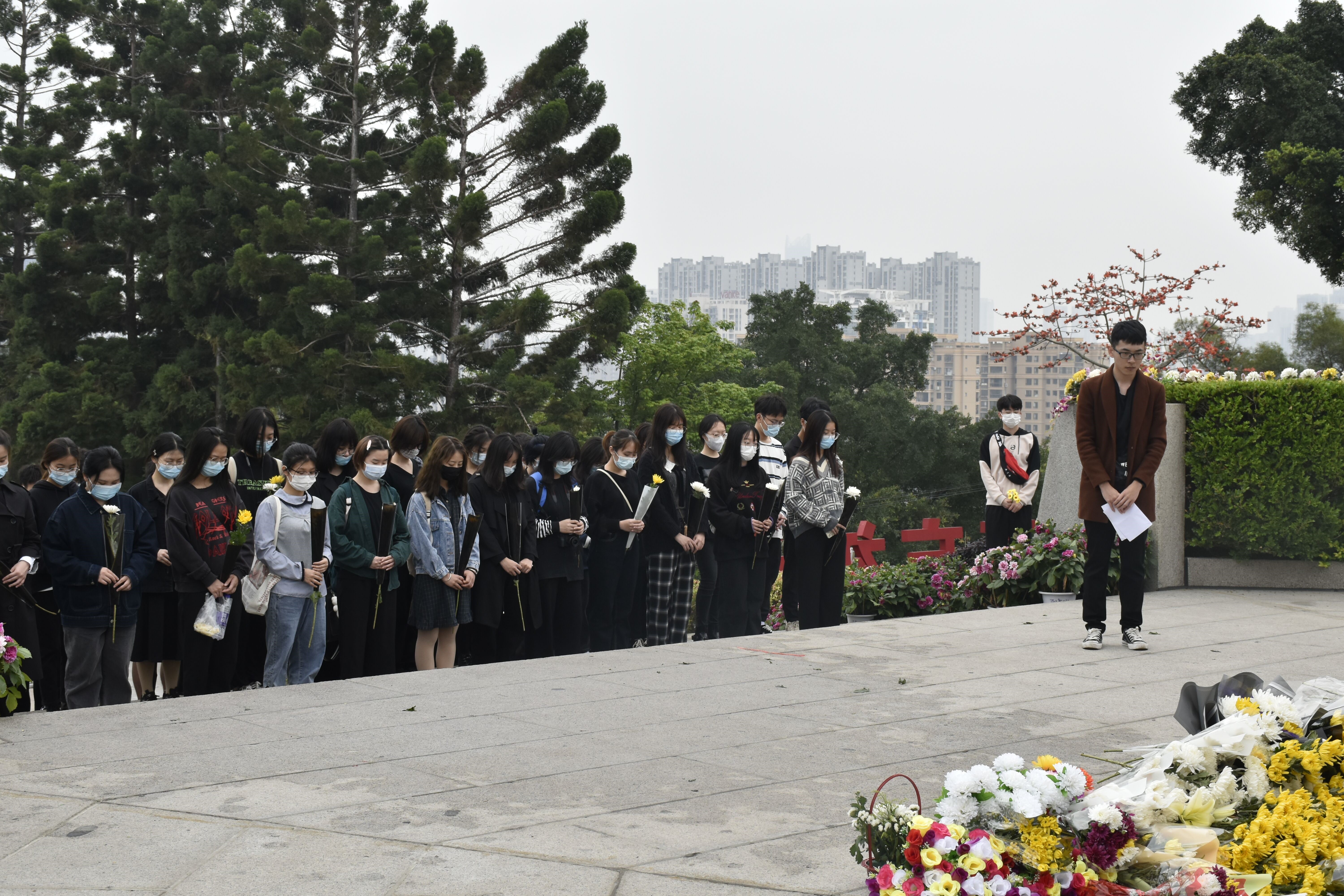 4月4日上午,动漫屋 和人文学院青年志愿者协会和红十字会一行50人,前往福州文林山革命烈士陵园开展开展清明祭扫活动。