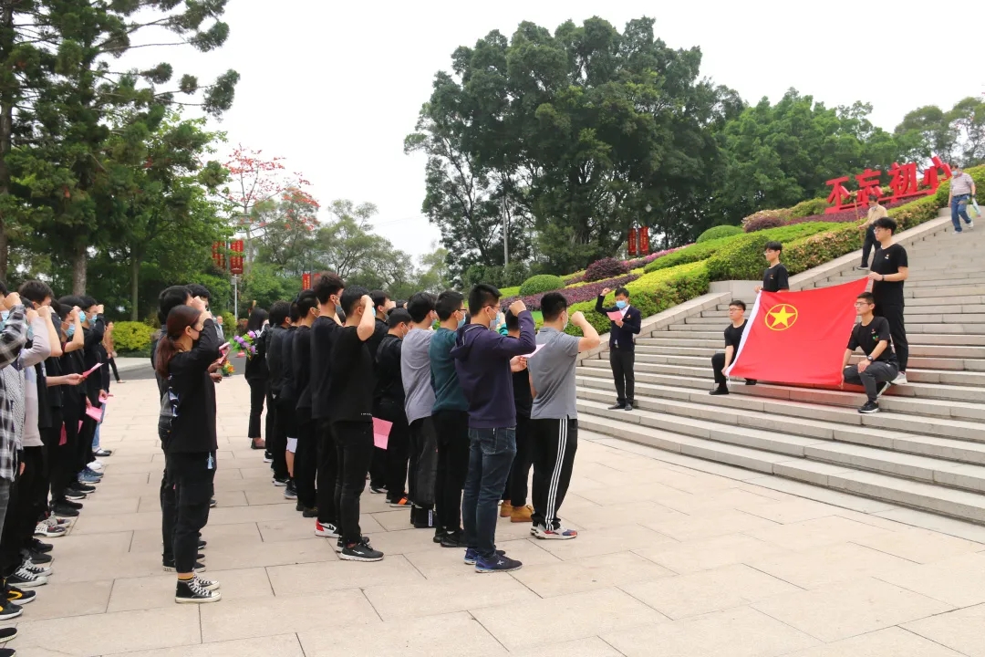 全体团员面向团旗,重温入团誓词