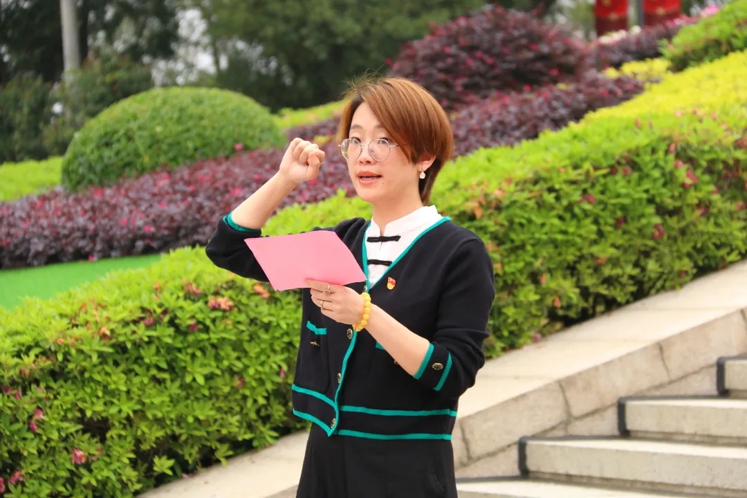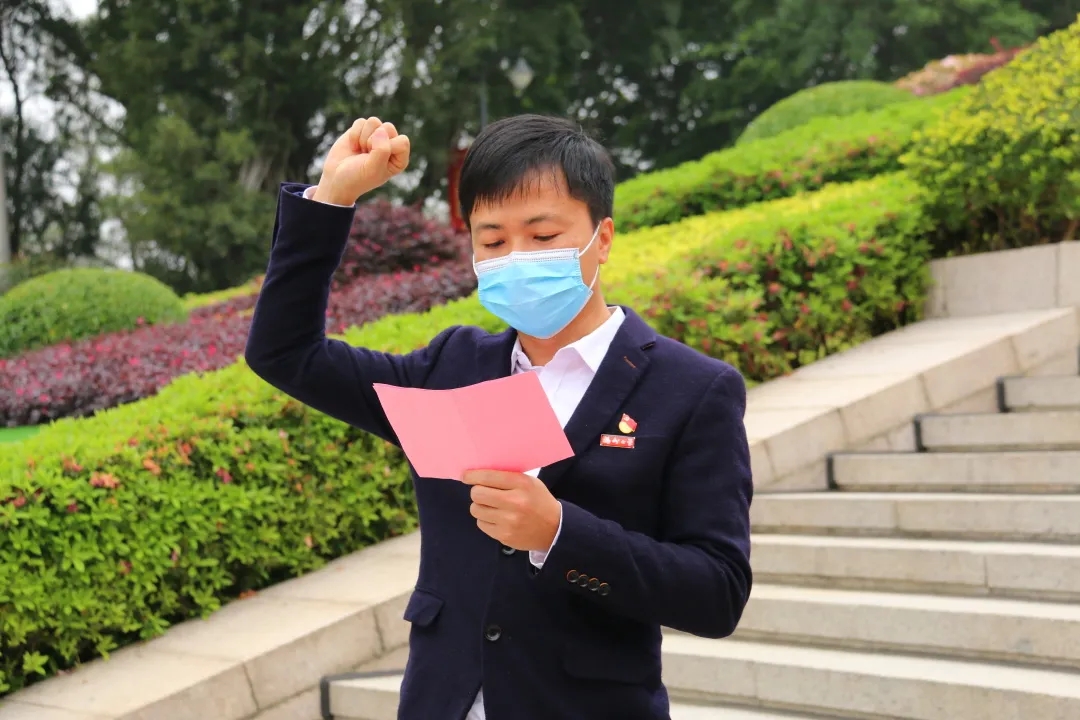 全体党员面向党旗,在党委组织员刘旭莹老师领誓下重温入党誓词。全体团员面向团旗,在团委书记林成金老师的领誓下重温入团誓词。他们举起右手,握紧拳头,用慷慨激昂的声音和铿锵有力的誓词,表达对党的忠诚,铭记初心使命,立志传承红色基因,为实现中国梦接力奋斗!