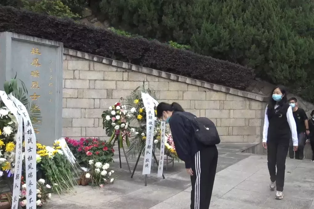 师生到烈士墓前献花鞠躬缅怀