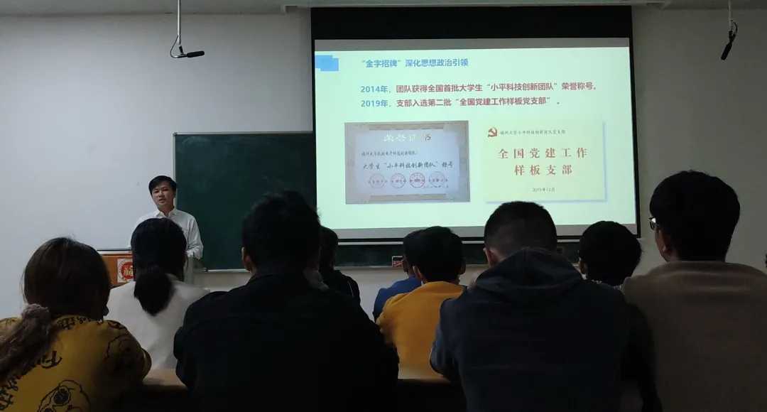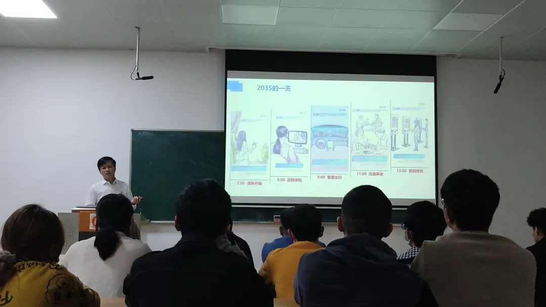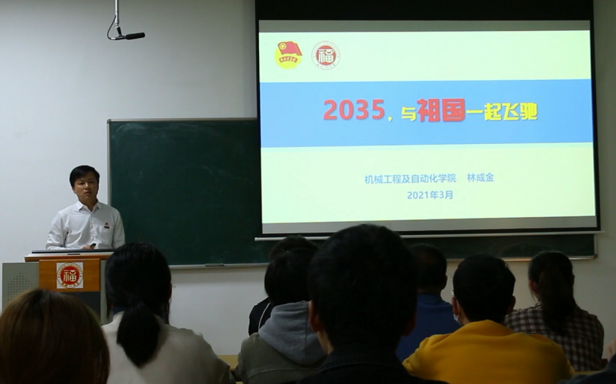 林成金老师通过对国家“十四五”规划和2035年远景目标的解读,与大家一起来憧憬了2035年美好的未来,进而引出“坚持创新在我国现代化建设全局中的核心地位,把科技自立自强作为国家发展的战略支撑。”他提到,作为肩负强国使命的一代,现在的大学生将在“十四五”期间和未来15年成长为国之栋梁、社会中坚,是祖国的未来、民族的希望。紧接着,林成金老师着重从““金字招牌”深化思想政治引领”“‘五育并举’促进学生全面发展”“‘四位一体’培养创新创业人才”等方面详细介绍了学校、学院为强国一代搭建的成长成才平台。最后,林成金老师勉励大家要坚定理想信念,牢记青春使命,矢志与祖国共奋进、与社会齐发展、与时代同进步。
