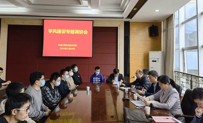 于11月19日在机南401会议室召开学风建设调研座谈会。学院党委叶青副书记(主持工作)、钟舜聪院长、林文麟副书记、何炳蔚副院长、张俊副院长、系主任、各年级辅导员和30余名2018级学业困难学生代表参加,会议由院团委书记林成金老师主持。