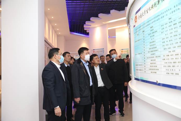 紧接着,黄大伟部长一行到机械创新文化馆,听取了小平科技创新团队的工作开展情况,现场观摩了团队师生的创新创业优秀作品。在参观过程中,黄大伟部长对小平科技创新团队强化党建引领、聚焦创新创业、突出示范带动等方面的进行了详细调研,对“挑战杯”、“互联网+”、机械创新设计大赛、机器人大赛等优秀作品产生了浓厚兴趣并驻足观看询问,和在场师生进行深入交流。黄大伟部长对小平科技创新团队的创新作法和建设成效给予充分肯定,鼓励团队进一步总结经验、改革创新,为党和国家培养更多优秀人才。