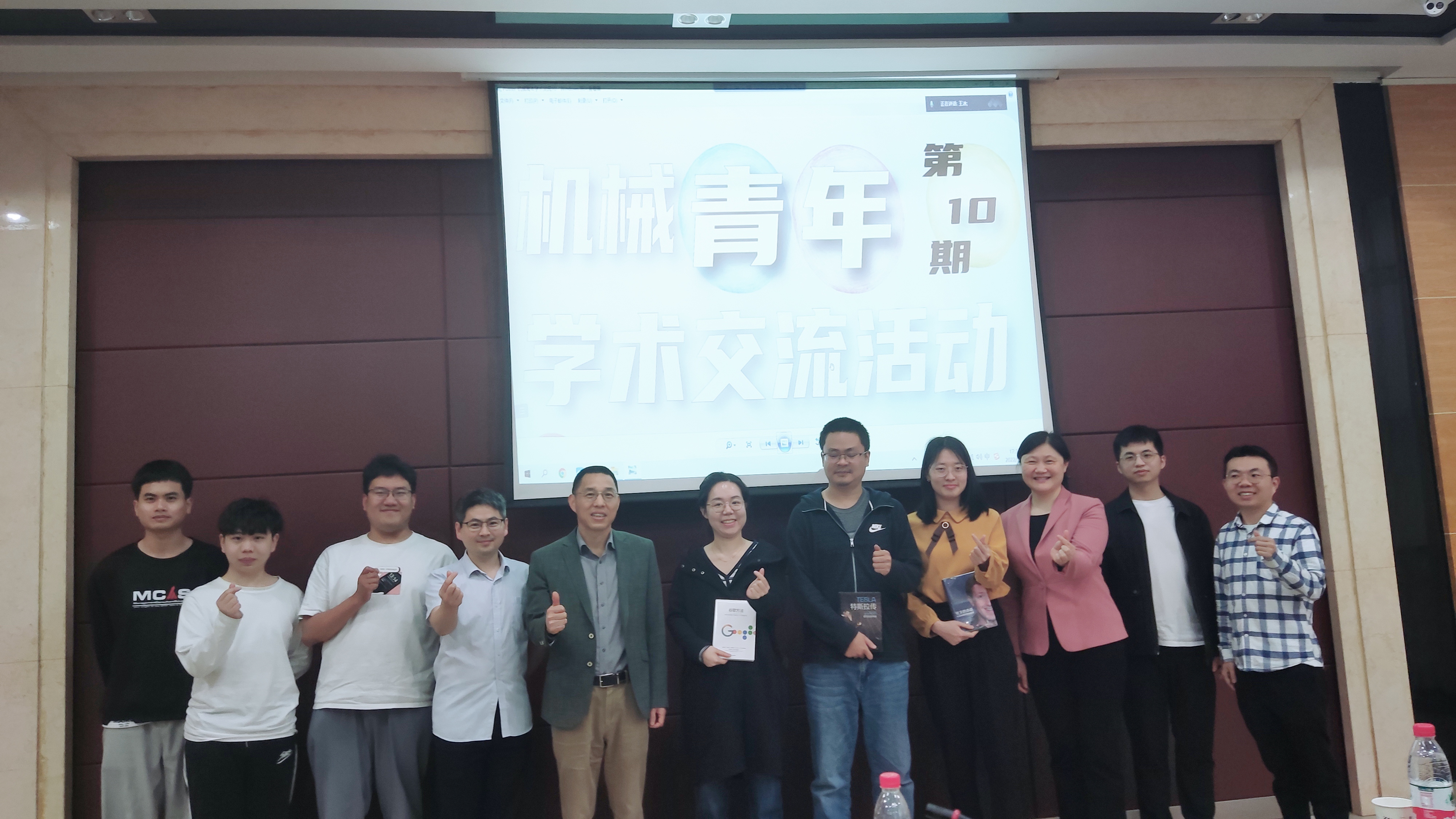 报告结束后,林有希教授为三位青年教师发放了纪念品书籍,希望他们奋力进取,在今后的教学科研中,一定要扎实教学,潜心科研,努力成长,厚积薄发,为机械院的发展奉献青春、贡献力量。