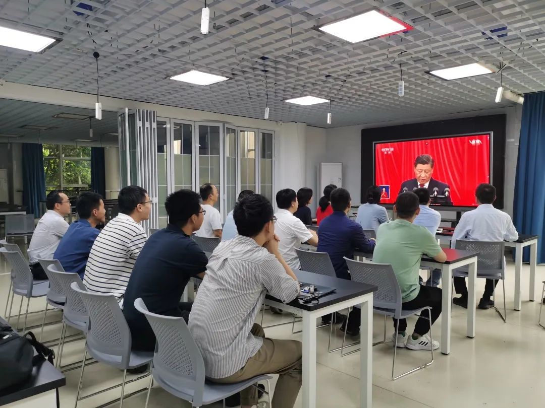 习近平总书记代表第十九届中央委员会向大会作了题为《高举中国特色社会主义伟大旗帜 为全面建设社会主义现代化国家而团结奋斗》的报告。在收看直播现场,学院师生边看边做记录,不时以热烈的掌声回应大会的精彩报告。