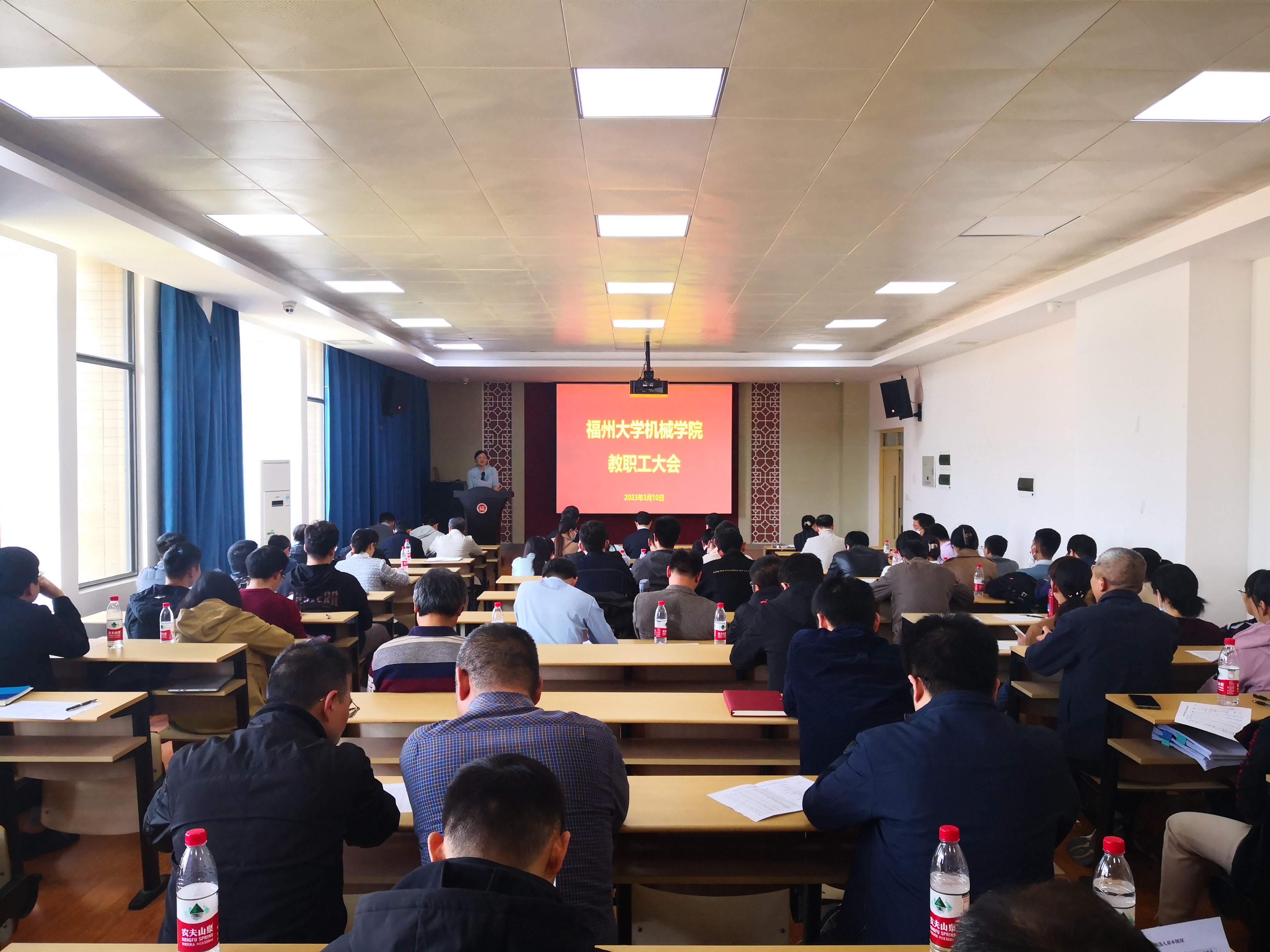 在机械楼南415会议室召开2023年春季新学期全院教职工大会,回顾总结了2022年学院工作情况,动员部署“深学争优、敢为争先、实干争效”行动工作和新学期重点工作。全体院领导和100多位教职工参加会议。