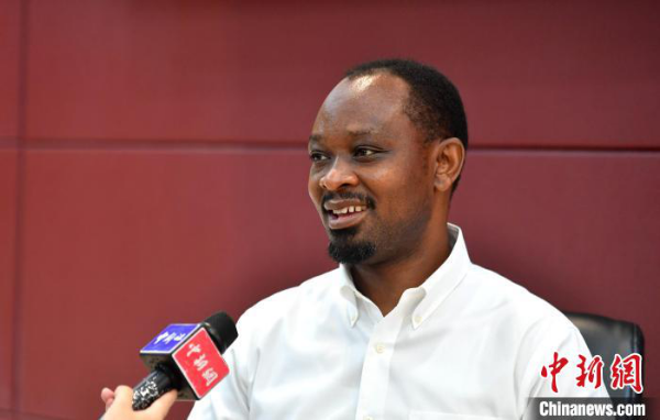 8月30日,南吉姆瓦在福州接受中新社记者采访,分享了他的圆梦中国之旅。 中新社记者 吕明 摄