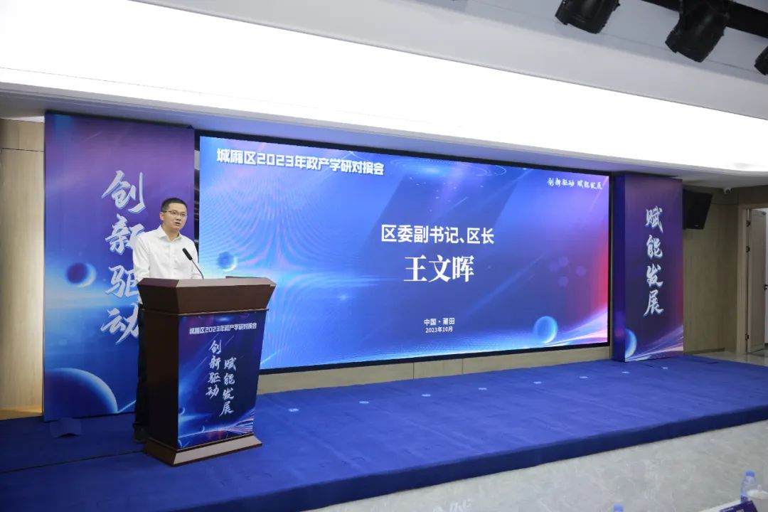 王文晖在致辞中表示,城厢把政产学研融合发展作为推进创新发展的重要抓手,通过常态化开展政产学研对接,不断完善创新政策体系,加快推进莆田市科创中心建设。希望各高校院所发挥人才、资源、创新等优势,给予城厢更多的支持和帮助,把更多的成果转化落地在城厢。城厢区委区政府将全力搭好平台、用好政策、做好服务,为高校院所、企业合作营造良好的发展环境,共创城厢绿色高质量发展新辉煌。