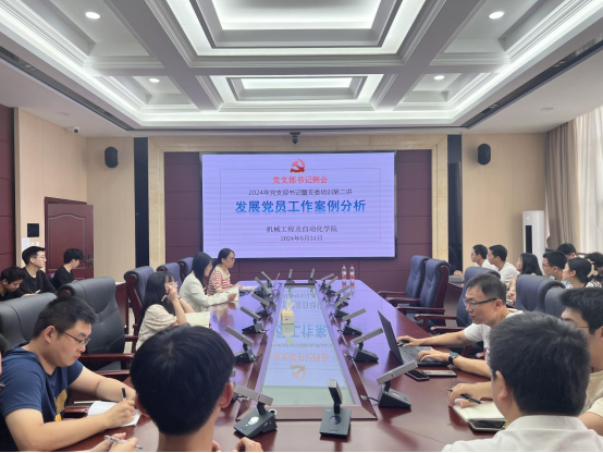 党委在机械楼南401会议室召开党支部书记例会,组织开展2024年党支部书记暨支委培训第二讲——《发展党员工作案例分析》。此次培训由院党委组织员夏丽君老师主讲,学院师生党支部书记、支委参加。