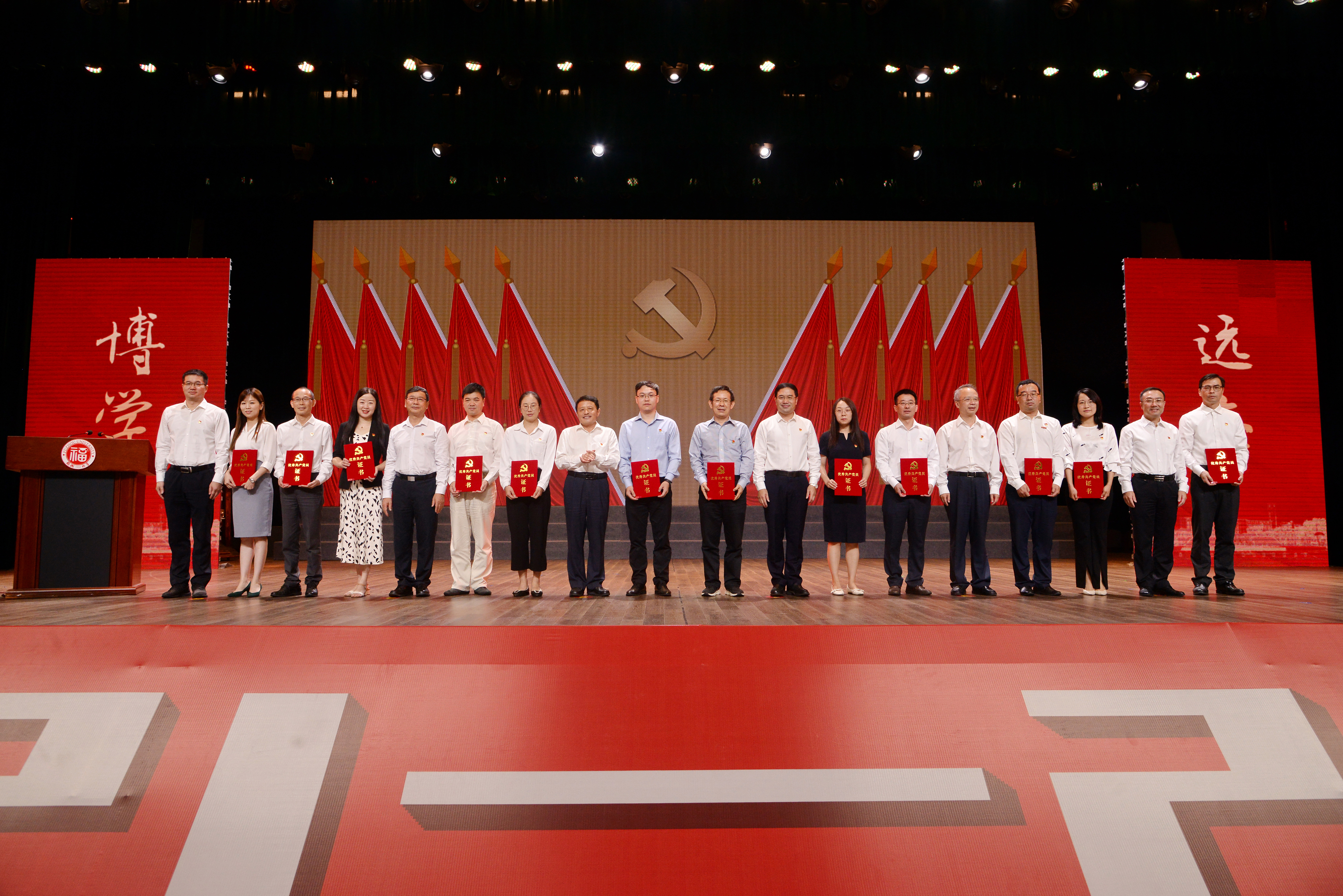 钟舜聪院长作为优秀共产党员代表发言。他首先感谢党组织的教育和培养,向获得“光荣在党五十年”纪念章的老一辈优秀党员致敬!他从初心使命、师德师风、开拓创新等方面分享了自己从海归博士到人民教师、从教学科研一线到双带头人的经历和取得的阶段性成绩。他表示,自己将珍惜荣誉,坚守初心使命,赓续红色血脉,传承福大“三种精神”,为学校“双一流”建设添砖加瓦,为光荣的党旗增光添彩!