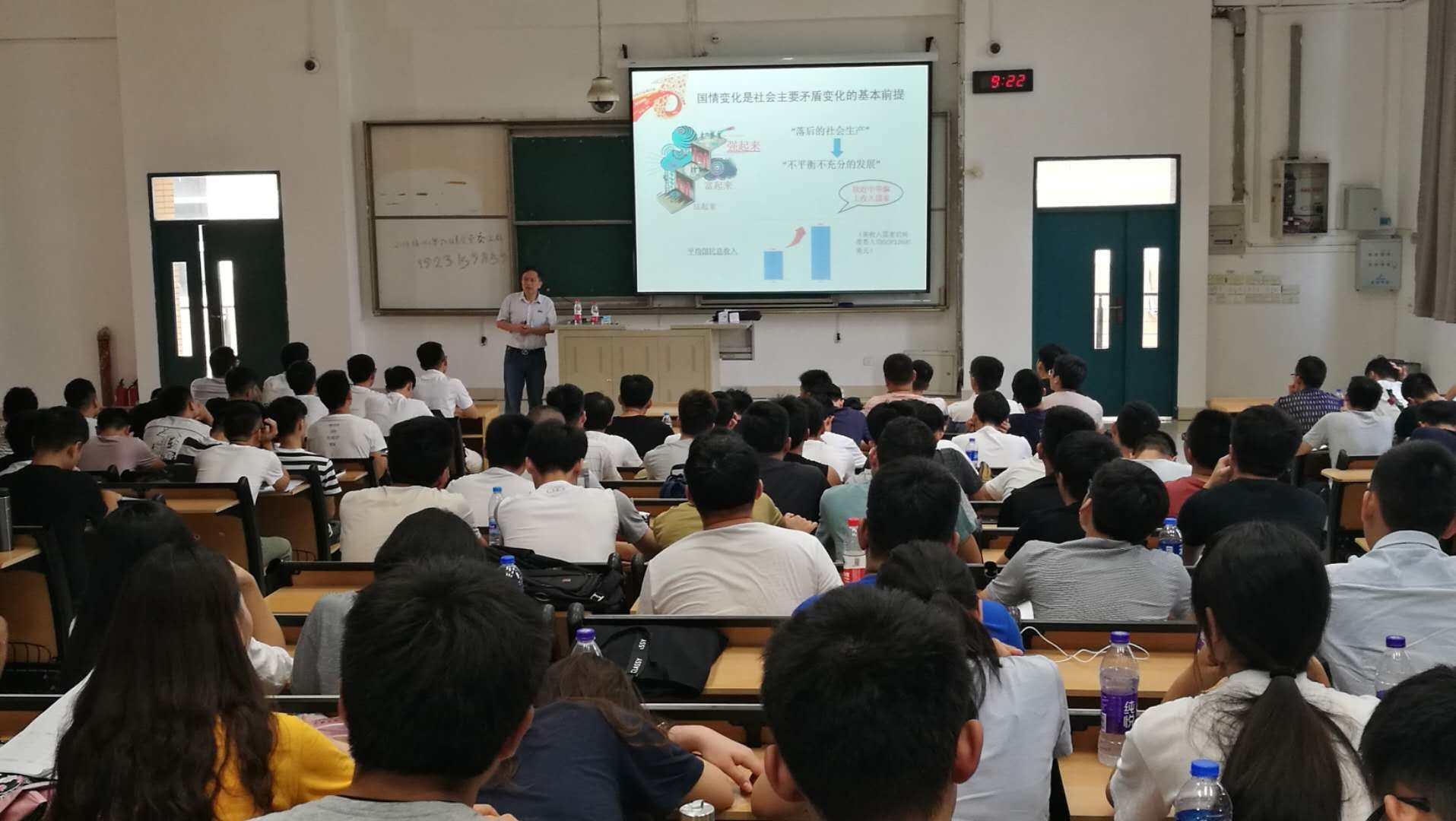 党委书记陈为旭在教学楼东3-100为2018级全体研究生做了我国社会主要矛盾的变化规律的讲座。