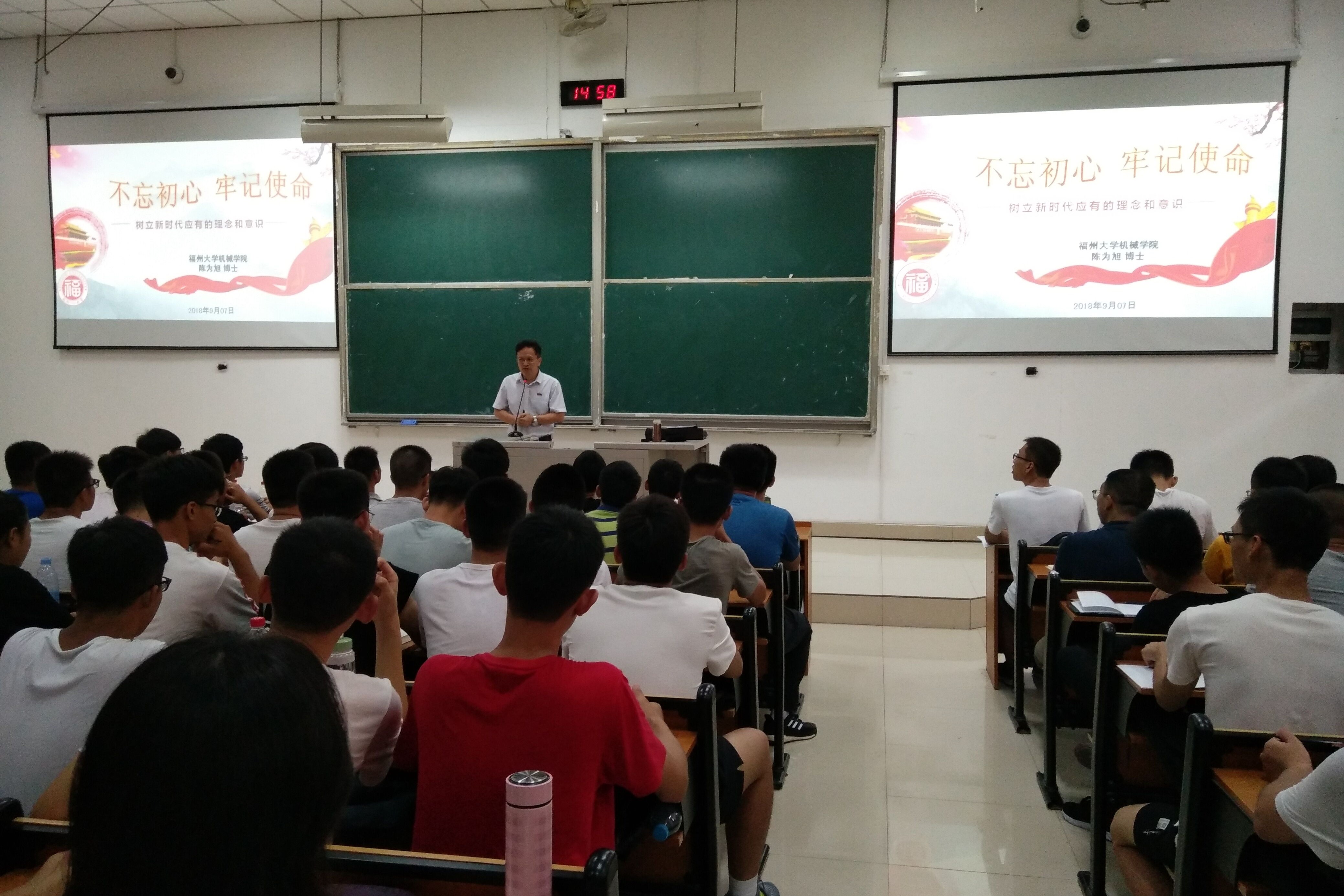 于文三-101举办主题为“不忘初心,牢记使命”的新生教育讲座。会议由党委书记陈为旭研究员主讲,动漫屋