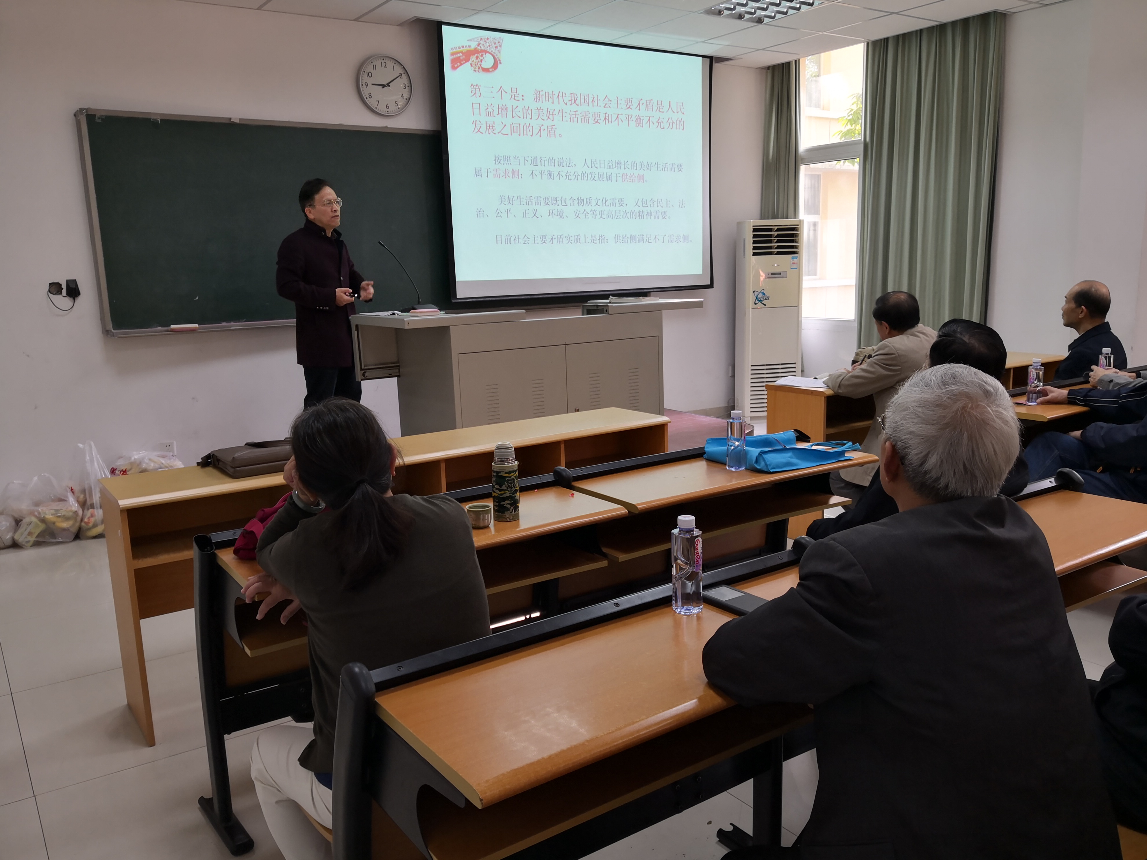 11月29日上午,院党委陈为旭书记在怡山校区化工楼201多媒体教室为退休支部党员作题为《如何把握我国社会主要矛盾的变化》的党课,退休支部30名党员参加了学习。