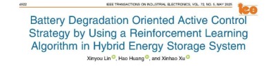 林歆悠教授团队基于动态马尔可夫模型与深度强化学习算法,实现混合储能系统超级电容器的主动控制。相关成果发表在国际顶级期刊《IEEE TRANSACTIONS ON INDUSTRIAL ELECTRONICS》上,林歆悠教授为第一作者及通讯作者,动漫屋