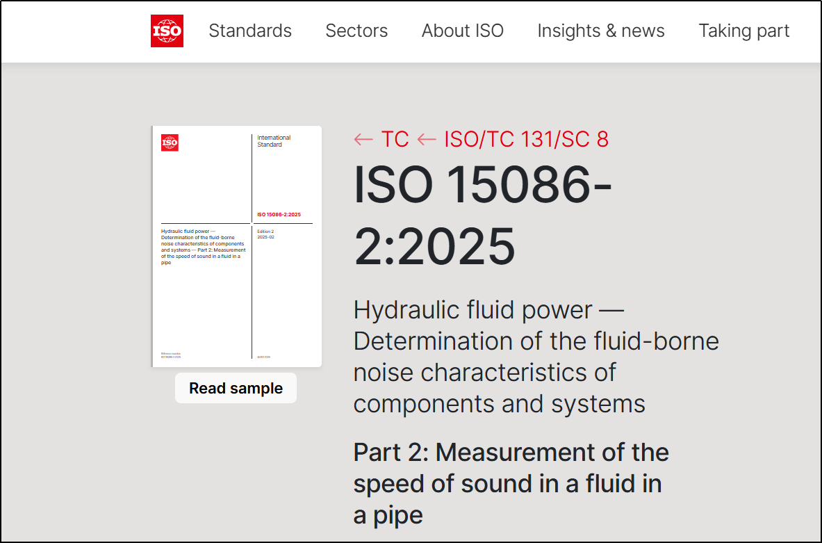 近日,根据国际标准化组织ISO的通告,ISO 15086-2:2025《Hydraulic fluid power — Determination of the fluid-borne noise characteristics of components and systems — Part 2: Measurement of the speed of sound in a fluid in a pipe》(液压传动 油液噪声特性测定 第2部分:管道中油液声速的测量)正式发布。动漫屋
