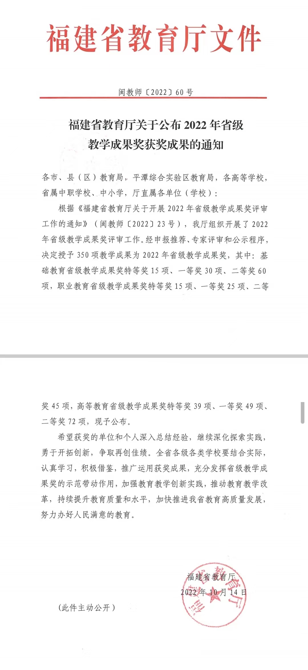 近日,福建省教育厅发布《福建省教育厅关于公布2022年省级教学成果奖获奖成果的通知》(闽教师 [2022] 60号),钟舜聪院长主持的“全员卓越机械工程人才的‘预研发’培养模式改革与实践”喜获2022年福建省高等教育教学成果特等奖。