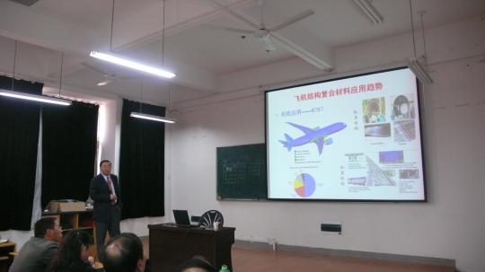 150多名师生作了一场题为“大飞机—复合材料—低碳经济”的学术专题报告。报告由学院陈淑梅副院长主持。