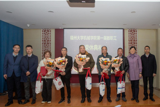 典礼上播放了学院工会精心制作的祝福视频,为荣休教职工送上各系、各单位的美好祝福和真诚感谢。大家纷纷表达了对荣休教师们多年来孜孜不倦、无私奉献精神的敬佩之情。2023年荣休教职工代表陈传铭老师深情回忆了1979年到机械学习和毕业留校任教的点滴,表达了对学院和同事们的感谢、感恩。新教师代表为退休教师献上了鲜花。