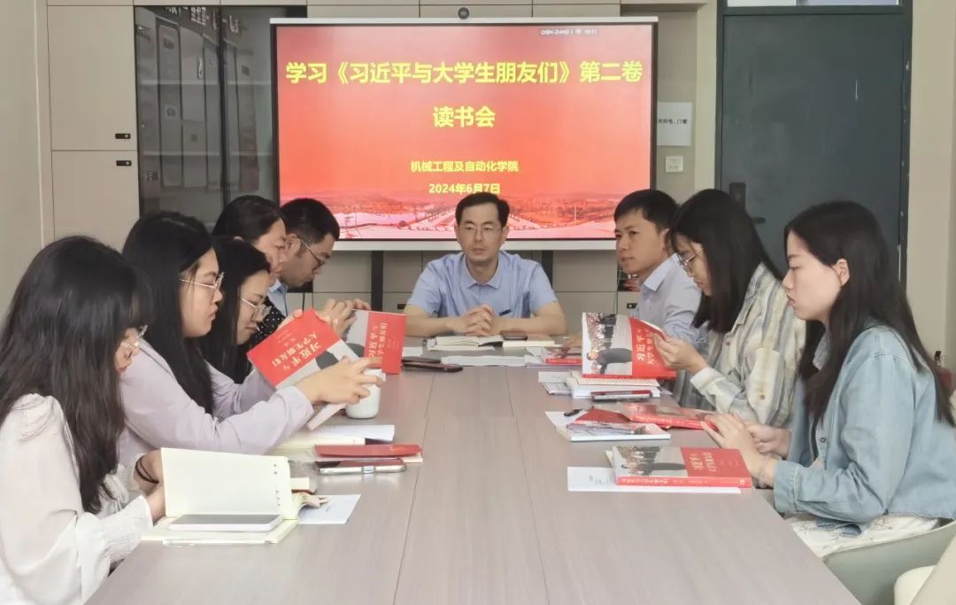 学工组在机械南楼415会议室举行《习近平与大学生朋友们》第二卷专题读书会,围绕学习习近平总书记重要寄语精神,结合自身学习经历分享了阅读《习近平与大学生朋友们》第二卷的心得体会。学院党委副书记兼纪委书记孙鋆参加专题读书会。
