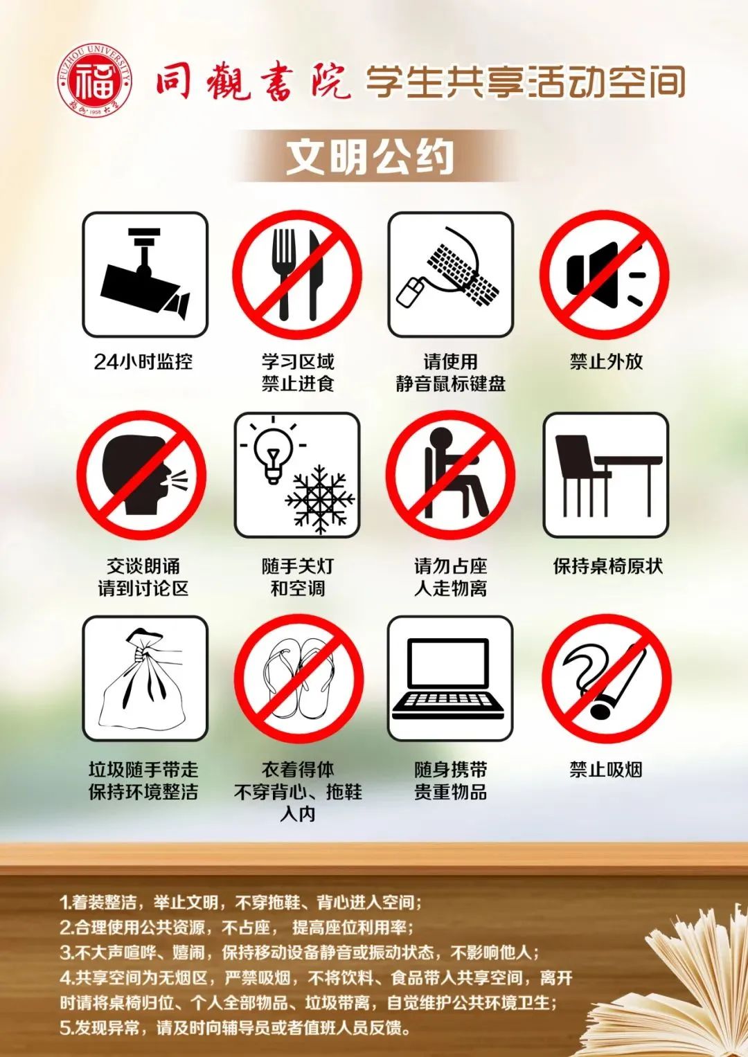 “同观书院”学生共享活动空间以现代书院制为载体,结合所在社区以机械、电气、材料、土木、生工、紫金、梅努斯等工科学生为主的特点,突出党建思政引领和弘扬中华优秀传统文化,致力于推动学生社区建成集思想政治教育、班级党团建、学习生活、师生互动、朋辈帮扶、心理辅导、就业创业和文化交流于一体的和谐园地。与机械楼“同观国学教育中心”遥相呼应,培养工科学生的人文精神,提升工科学生文化素养。