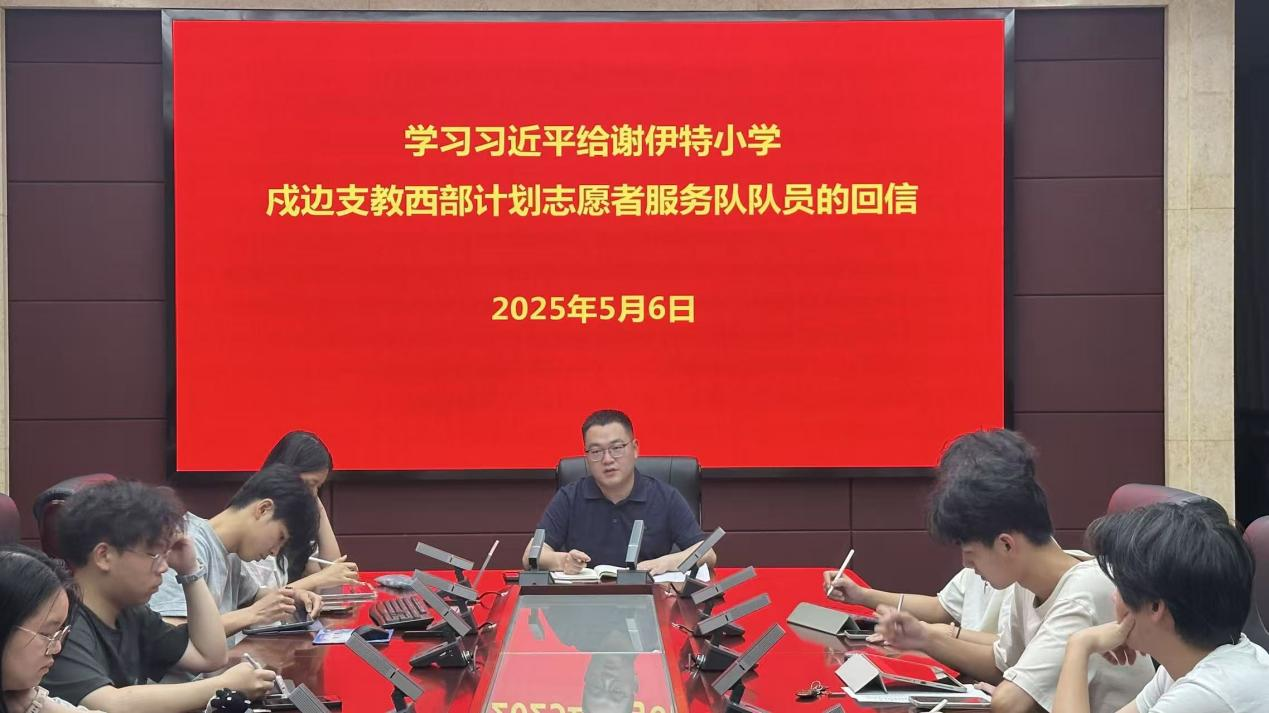 在机械南401召开专题学习会,组织学生骨干深入学习习近平总书记给谢依特小学戍边支教西部计划志愿者服务队队员的回信精神。院团委副书记李辉容老师及各年级学生代表参与学习,共同感悟新时代青年的责任与担当。