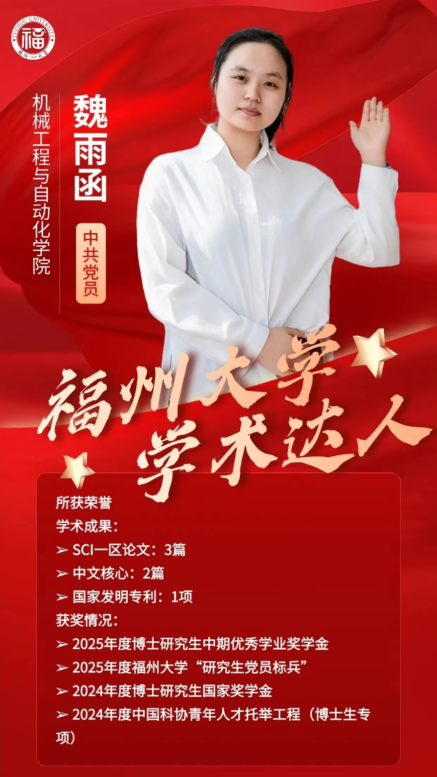 2022级博士研究生魏雨函以严谨的求学态度、扎实的学术功底与突出的科研成果成功入选。