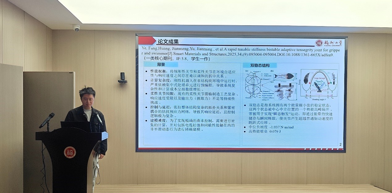 “志愿服务先进个人”称号、2025年研究生助研奖学金、2025年研究生国家奖学金,以第一作者发表SCI三区期刊论文1篇,并申请发明专利1项。在分享过程中,他结合个人论文成果展示,系统介绍了从课题背景凝练、科学问题提出、研究方案设计到论文成果产出的完整过程。同时,他也结合自身经历,分享了如何在科研任务、学生工作与个人成长之间做好统筹,鼓励同学们在扎实推进学术研究的同时,主动参与学院工作与实践锻炼,不断提升综合能力。