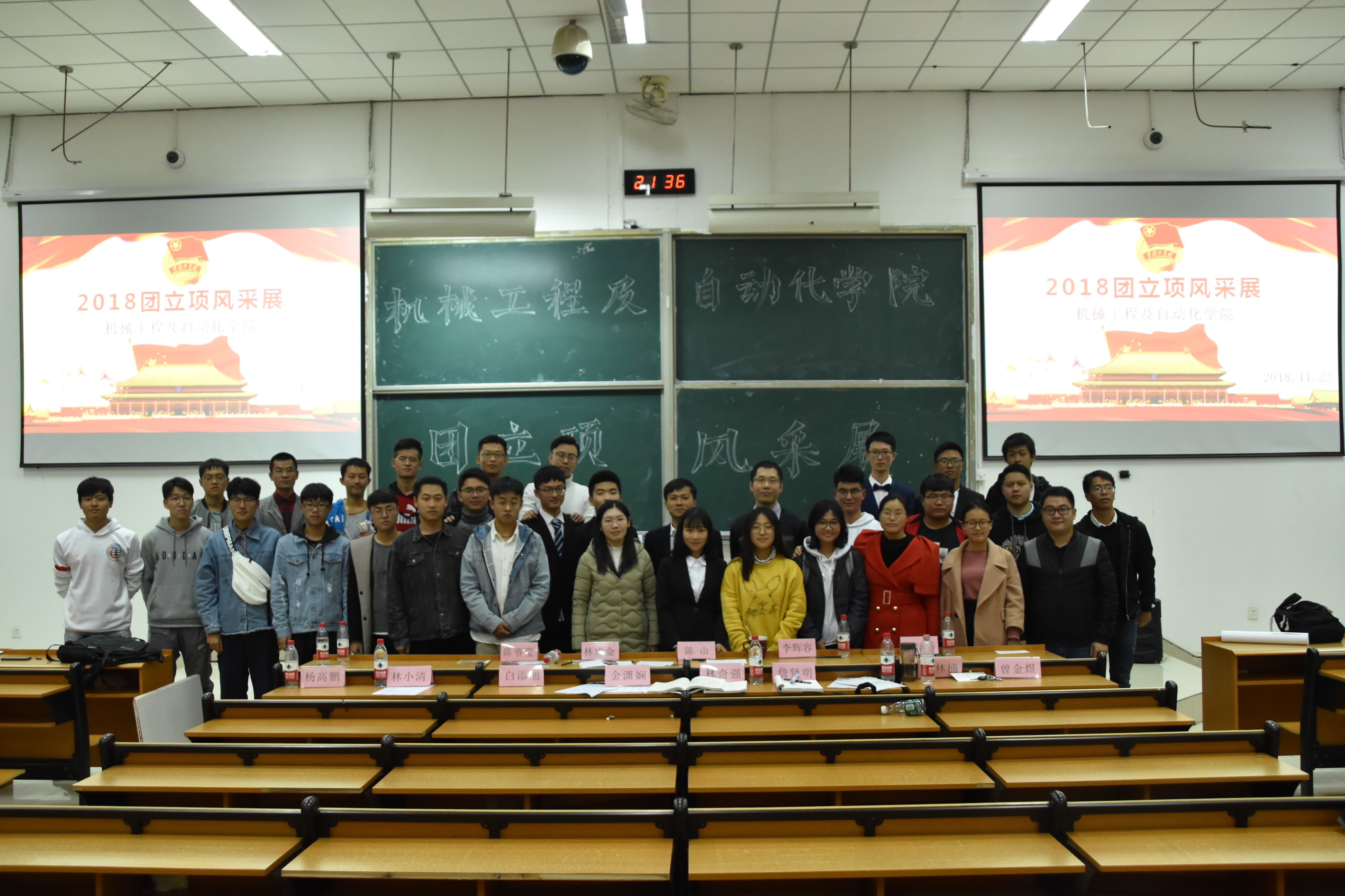 本次活动以“砥砺追梦一甲子,青年学习谱华章”为主题,评选班级为2017、2018级共18个班级,各班以五分钟PPT或视频解说的方式为同学展示团立项活动风采,分享心得体会。在展示期间,有些班级配合PPT进行表演,如班级成员在台上表演采访校友的过程,真实再现活动过程等。另有彩旗、祝福墙等新奇的展现方式,夺得了各评委和观众的热烈掌声。