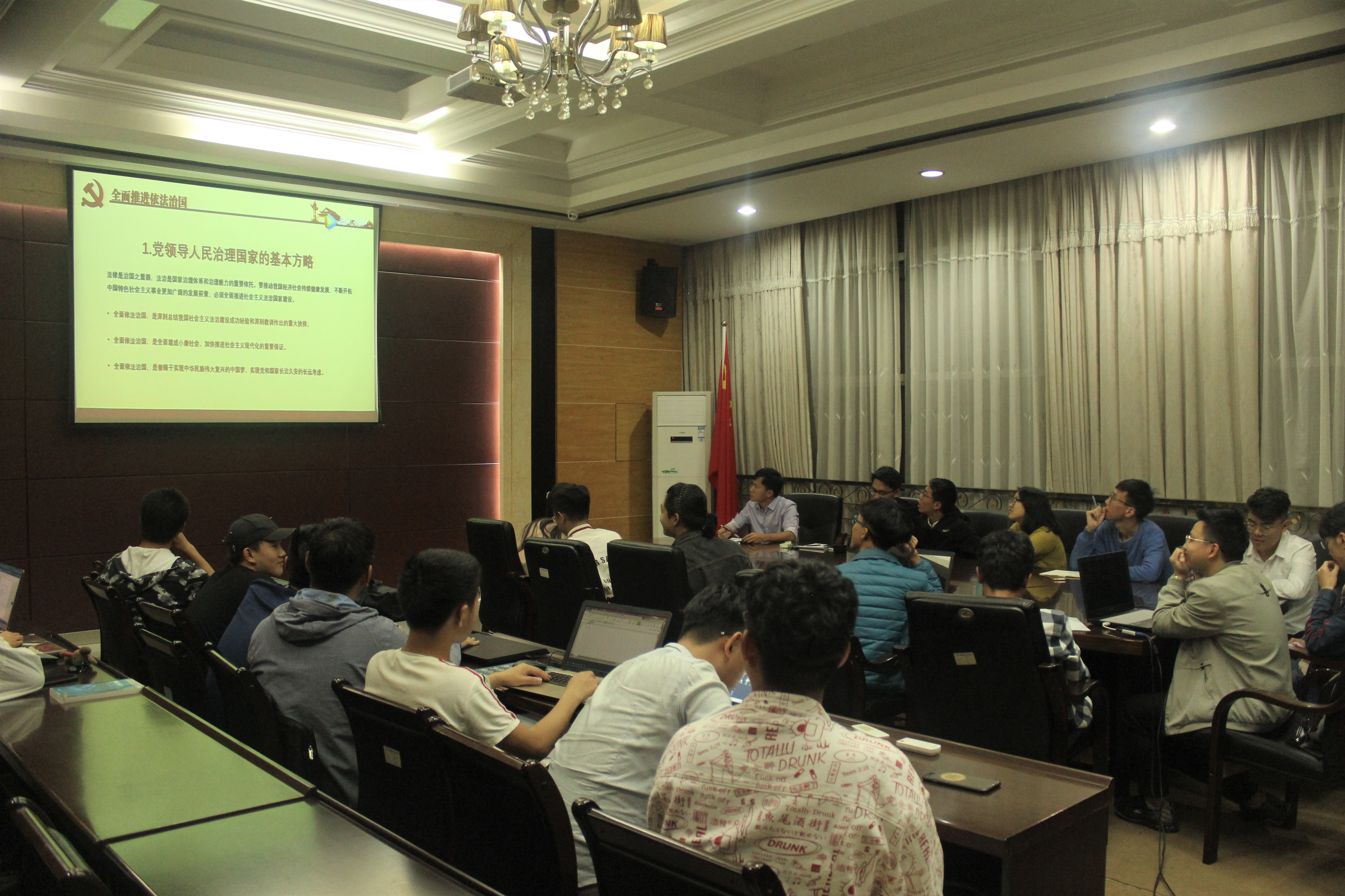 会上,通过视频的形式,林成金老师就现行宪法实施的意义及宪法修行改正的意义做了主要介绍,他指出宪法是我国的根本法,作为学生会干部要严格遵守宪法,自觉维护宪法的尊严。