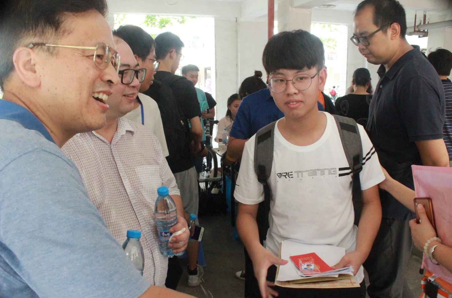的迎新工作。院党委书记陈为旭研究员、副院长何炳蔚教授、党委副书记林文麟老师、团委副书记林成金老师、党委秘书陈劼老师、17级辅导员陈伯豪老师、18级辅导员滕培秀老师随行莅临现场指导迎新工作。
