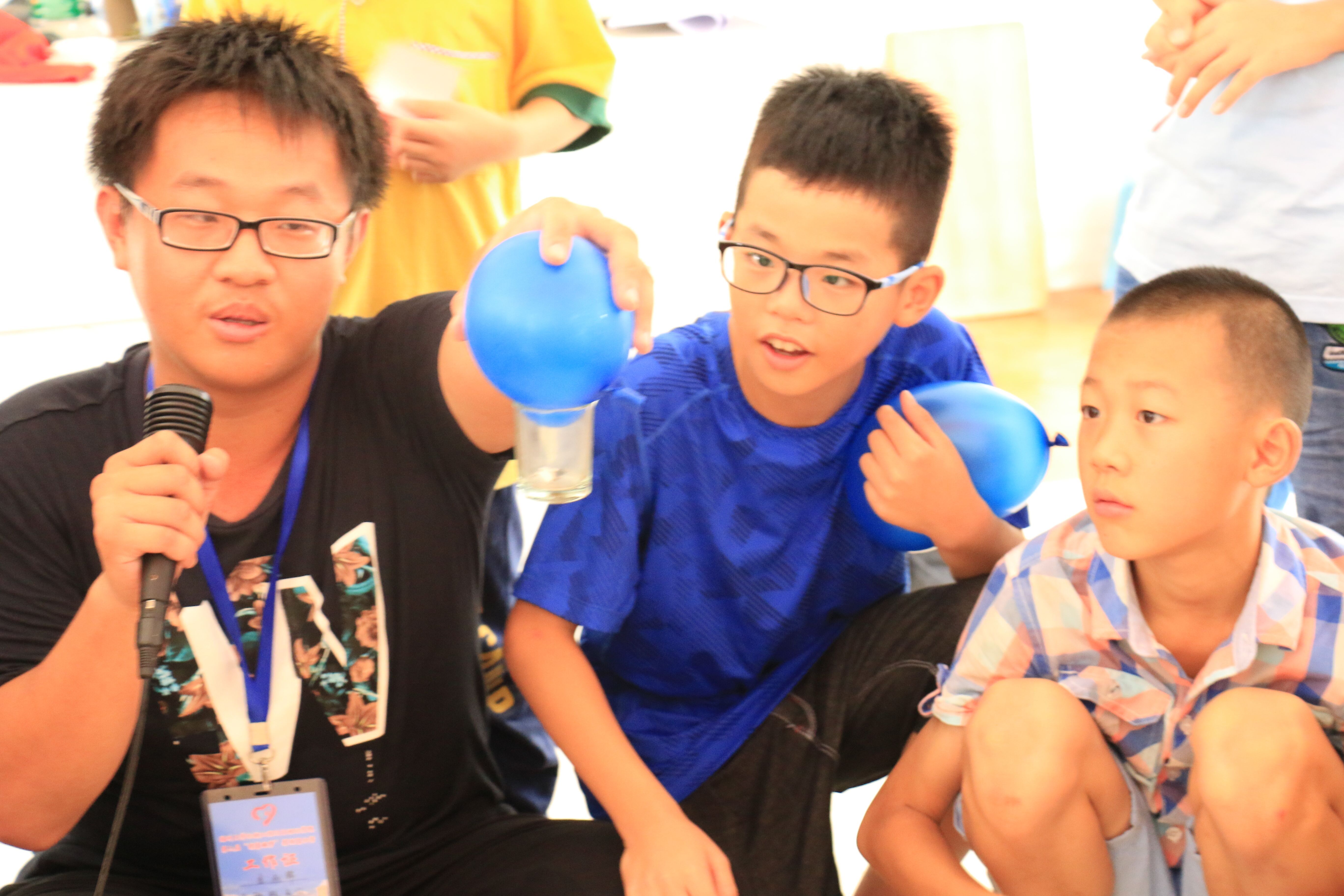 除了化学以外志愿者们还开设了物理小课堂,电动机和旋转的铁片,吸引杯子的魔力气球。讲解过程中小朋友踊跃回答实践队员的问题,积极提出自己的不解。动手实验时,小朋友们大胆而又认真。面对经过多次失败的电动机实验,孩子仍旧充满热情,拉着志愿者们一次有又一次重复实验,当实验最终成功时,孩子们都脸上的笑容都是溢于言表。物理实验虽是并不复杂,但却能够激发孩子们对科学的兴趣,以及探索科学的精神,提高孩子们的综合素质。