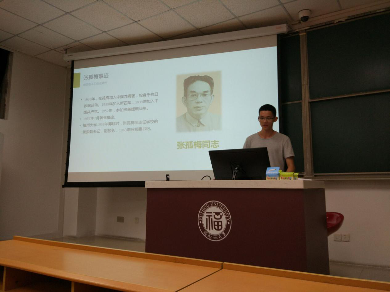 团课伊始,机制三班团支书吴坤鹏通过展示校史的照片、题字等资料讲述了动漫屋