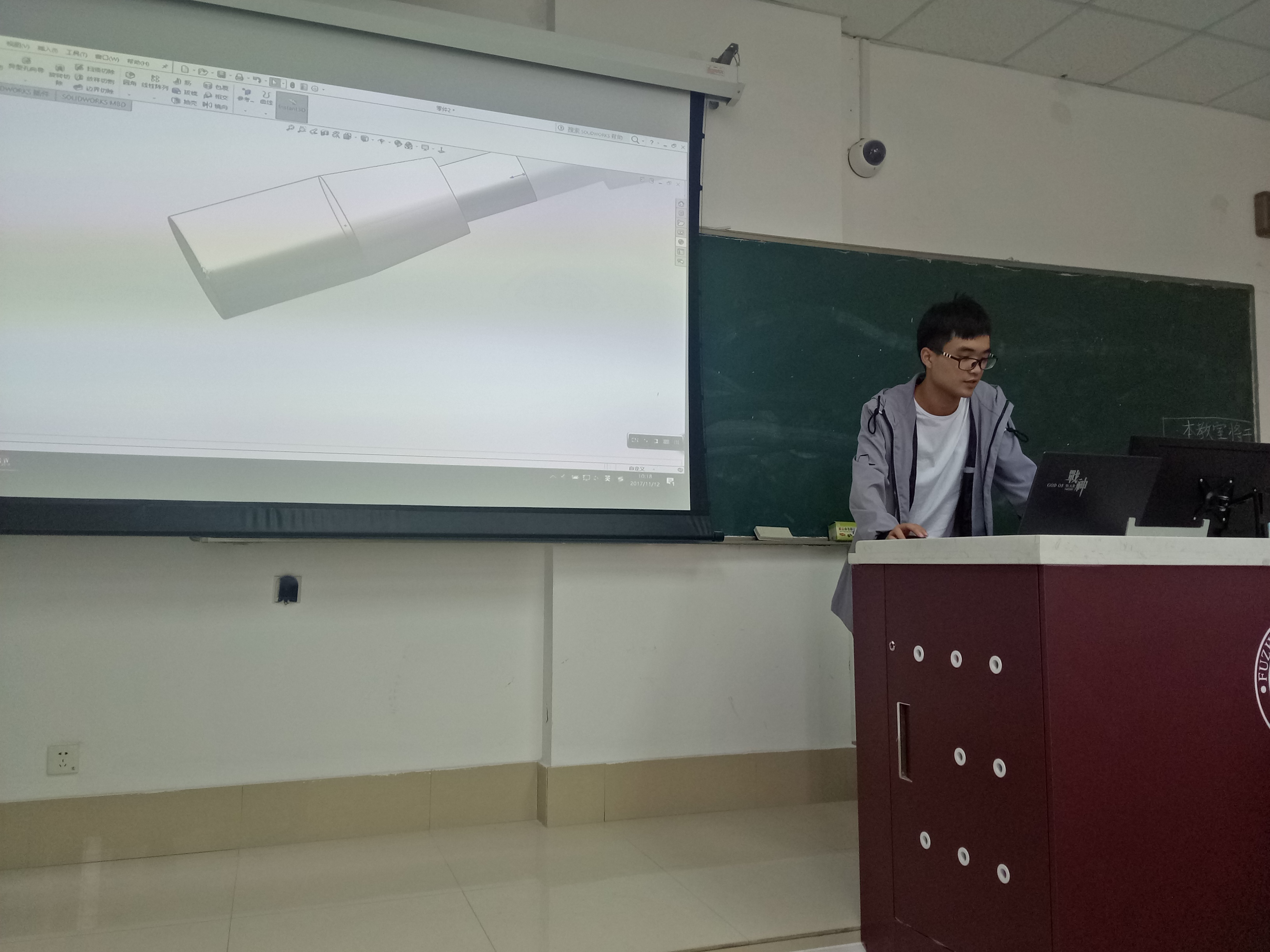 开始授课之前,夏老师给同学们分享了软件资源,并不耐其烦地进行手把手教学。在安装过程中,班长王安宁向同学们分享了其学习方法。在SolidWorks课堂第一讲上,夏老师讲解了基本草图的绘制、智能尺寸的使用、几何关系的使用、一些快捷键的使用及特征中拉伸、切除、圆角、放样,及其各自的参数一般使用方法。课堂最后,夏老师现场制作了一个杯子,来串联前面所讲的知识。课后,夏老师又细心地为那些不懂的同学进行讲解。教室里透露着浓浓的学习气氛。