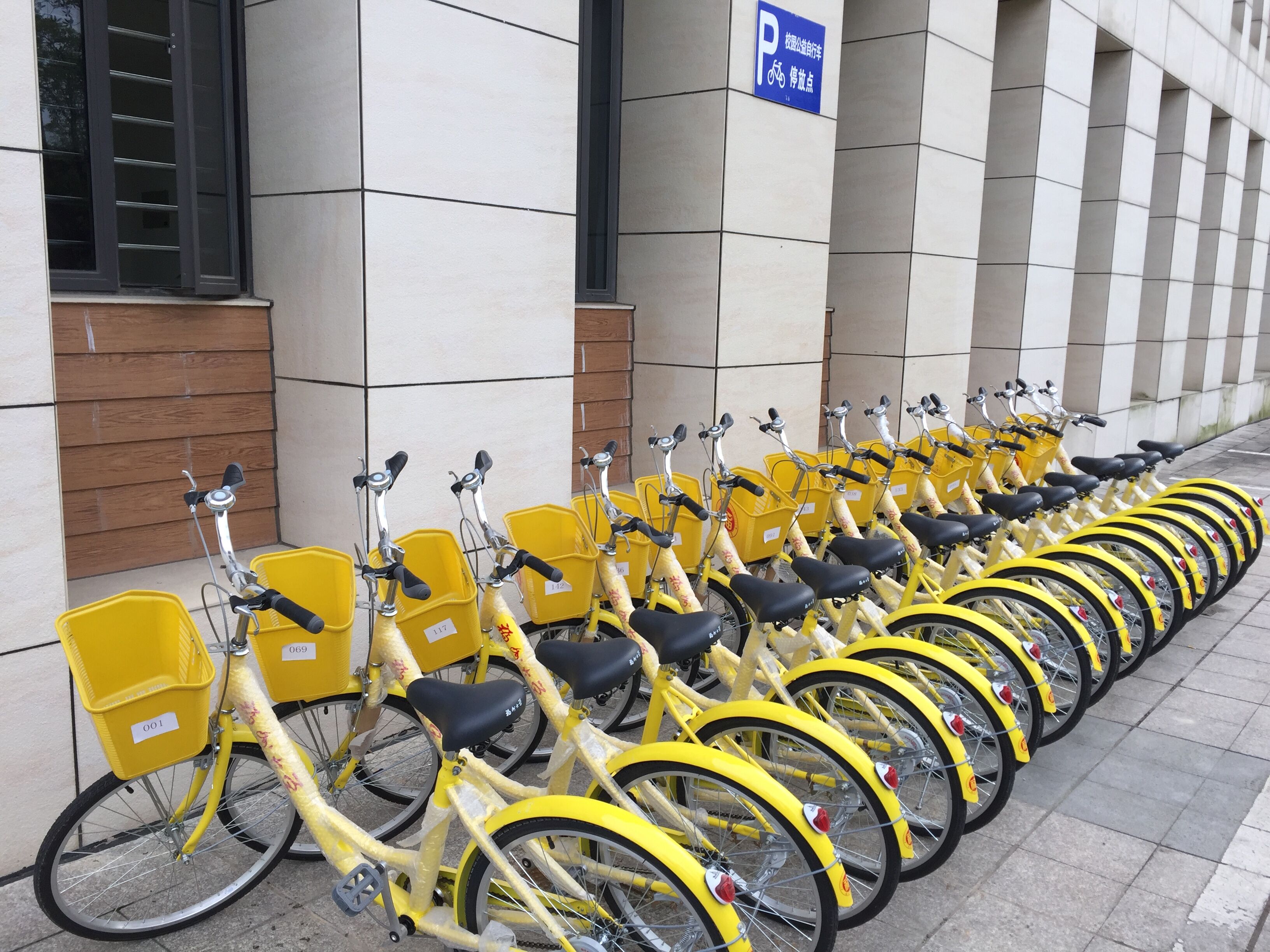 过程中,一部分志愿者为自行车充气,另一部分志愿者则把自行车擦洗干净。而后,志愿者们将自行车骑到西一门岗亭、北门岗亭、东门岗亭、行政北楼、行政南楼、西二门岗亭、电气学院与物信学院间岗亭、图书馆岗亭、教学楼中楼岗亭、素质拓展中心、虚静阁餐厅等11个公益自行车停放点,方便教学区的师生员工使用。