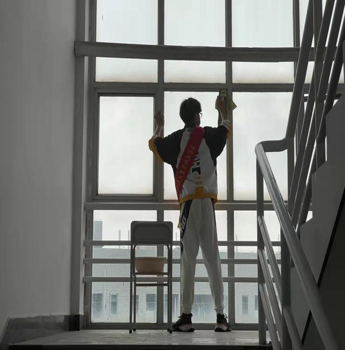 青年志愿者协会组织志愿者们在铜盘校区九号楼举行了义务劳动--楼层卫生打扫活动。志愿者们清理着楼层的每一处地方,不留死角。