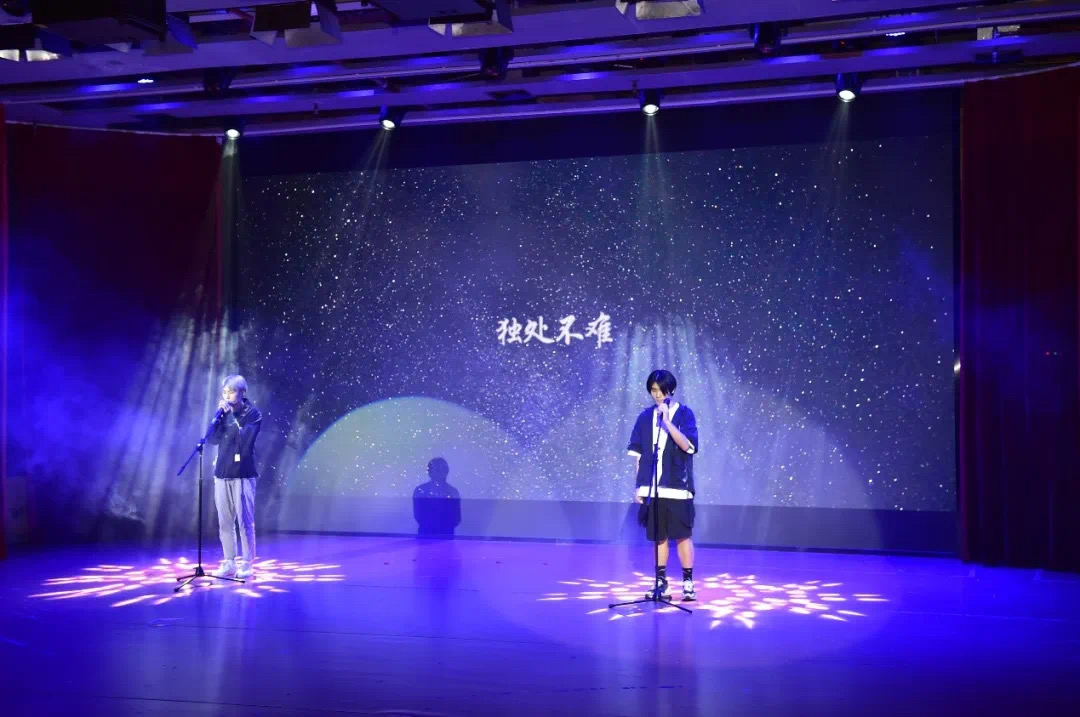 中场期间,18级辅导员滕培秀老师携女儿一起为大家吹响了葫芦丝,一首《孤勇者》和非常动人又温情的祝词给这场晚会的每一位同学都留下了深刻的印象。