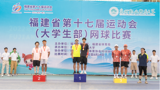 四年一度的福建省第十七届运动会(大学生部)网球比赛在泉州圆满落幕。比赛分团体和单项举行,共6天时间,来自福州,厦门,漳州等地区的各所高校纷纷在网球场上展开激烈角逐。